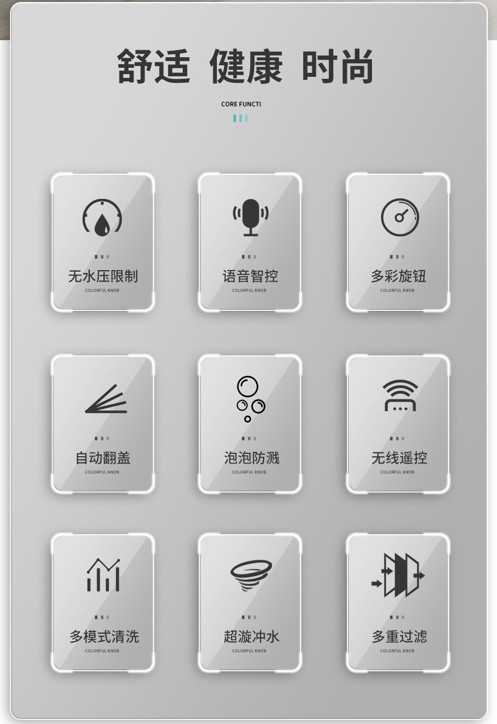 9、按摩清洗        10、無電沖刷